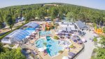 A state-of-the-art sanitary block in the touring area. Additional older unit only open in July/Aug. Good provision for children and babies and accessible facilities, Laundry facilities. Motorhome services. Shop with bakery, bar, restaurant, snack service, pizzeria and takeaway. TV and recreation rooms. Three swimming pools, one heated and covered (outdoor 25/4-11/9; covered 6/4-23/9), one larger one with slide and flume. Balnéo. Tennis. Three playgrounds, one adventure type. Bicycle hire. Minigolf. Kid and teens club. Barbecue area. WiFi over site (free in bar).