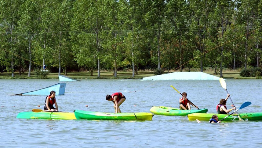 On the edge of a ten-hectare lake, this site is ideal for watersports enthusiasts. It includes activities for the whole family – wakeboarding, swimming, kayaking, sailing, pedalos, beach volleyball and much more. This site offers around 100 marked grass pitches (120 sq.m., all with 16A electricity) for touring, small hedges and some shade from mature trees. The site is popular with youth groups, but the touring area is separate and seemed quite tranquil when we visited in July. The site claims to have the only water ski tow in Western France suitable for both expert and novice. Bring your cycle as you will want to explore the route around the lake — chalets and gîtes to rent (all year). Futuroscope is easily accessible from this location.