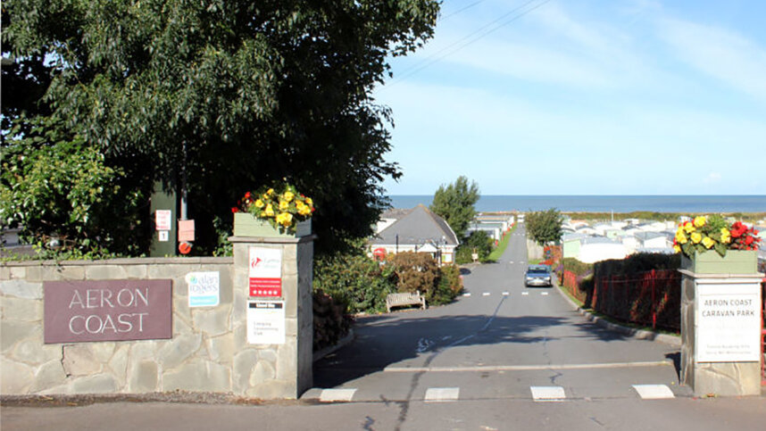 Park is on northern outskirts of Aberaeron village on A487, with entrance on the right-hand side of a petrol station. Brown signpost.