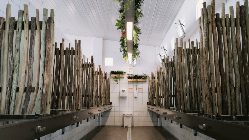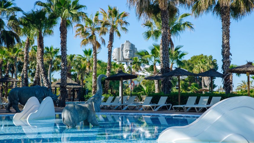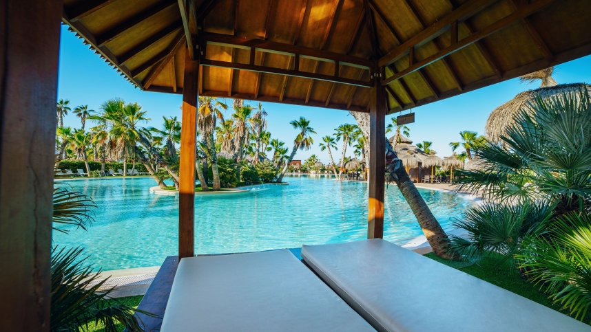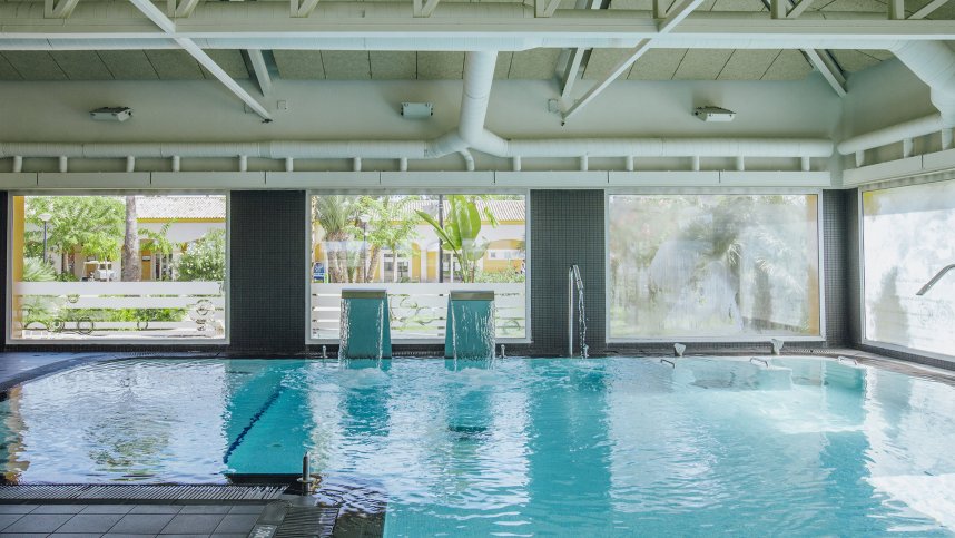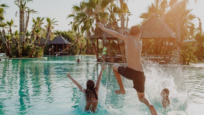 On-site amenities include a tropical-themed swimming pool complex and a state-of-the-art wellness centre. There is full accessible facilities including at the swimming pool and staffed gym. There is accommodation to rent, including 46 Balinese-style bungalows adapted for visitors with accessibility requirements. The site is ideal for family holidays in summer and winter sun-seekers.