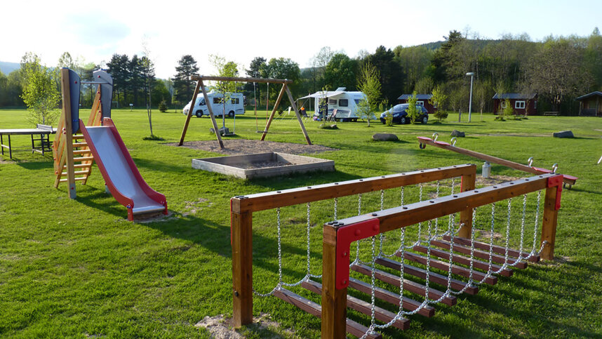 The single heated, unisex sanitary block includes hot showers and designated male/female toilets. Washbasins, both vanity style and in cubicles. Accessible Facilities. Family room. Laundry facilities. Good campers’ kitchen with free hot water. Motorhome services. Reception with small shop. Restaurant and takeaway (1/5-30/9). TV room. Canoes and mountain bike hire. Barbecue areas. Sauna. Playground. Football. Volleyball. Boules. Fishing. Skiing in winter. WiFi (free).