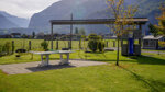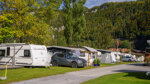 AlpenCamping is a small family site located just west of Meiringen, an important winter sports resort and hiking centre in the summer with good road and rail links. Opened in 2007, the enthusiastic owners have developed this into a good all-year site (closed November) and continue to make steady improvements. There are 54 touring pitches, some occupied by seasonal caravans, which are flat and grassy and all have electrical connections and many have water. A further 32 pitches are occupied by well maintained residential units. This is a simple site with few amenities but there is an excellent centrally located toilet block and a small shop for essentials.