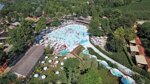 Altomincio Family Park is situated alongside the River Mincio, 7 km. south of Lake Garda. There is a power station nearby with tall chimneys. This is a huge bungalow park with a hub comprising swimming pools and all the themed site facilities, tailored specifically for children. There is an Olympic size pool and a fun pool as well as a series of fantastic water slides and rapids. A varied entertainment and activity programme is in place in peak season and special activities for children, as well as a baby sitting service, provided by the entertainment team. On-site amenities include a large supermarket, some sports activities, a mini club and games area, and a pleasant, themed restaurant. A good selection of fully equipped mobile homes is available to rent through agencies.