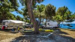Camping Stoja in Pula is an attractive and well-maintained site on a small peninsula and, therefore, almost surrounded by the waters of the clear Adriatic. In the centre of the site is the old Fort Stoja, built in 1884 for coastal defence. Some of its buildings are now used as a toilet block/laundry, and the entertainment team uses its courtyard. The 700 touring pitches here vary significantly in size (50-120 sq.m) and are marked by round, concrete, numbered blocks separated by young trees. About half have shade from mature trees, and all are slightly sloping on grass and gravel.