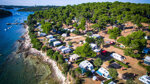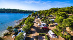 Camping Indije is on the beautiful Adriatic coast in Banjole (Medulin), only a few kilometres from the historic centre of Pula. This is a very attractive hilly site with many pitches on terraces together with a double row on level ground along the water’s edge. All 450 grass and gravel pitches (50-120 sq.m) are for touring units and most are well shaded. All have 10A electricity and 16 are fully serviced. There are lovely open views over the sea to the islands from many pitches. The layout of the site gives a pleasant, shady atmosphere. On-site, you will find a supermarket with a reasonable assortment of supplies, and there are two restaurants on-site, one being a pizzeria and the other having beautiful sea views which offer Croatian cuisine with meat and seafood specialities.