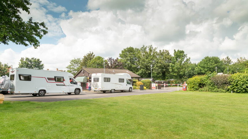 The toilet block provides toilets, showers and wash basins. Accessible sanitary facilities. Laundry. Dish washing area. Defibrillator. Gas sales. Motorhome service point. Chemical toilet point. No children’s play area. BBQs allowed, charcoal, gas and electric. TV reception good. Wi-Fi good, charged. Defibrillator. No tents allowed. Information room. Pets allowed. Dog walk adjacent. Twin axle caravans accepted. No late-night arrivals area. Earliest time of arrival 1:00pm. Maximum outfit length 8.5 metres. Caravan & Motorhome storage. Bus stop 200 metres. Train Station 2 miles. Tesco 7 miles.