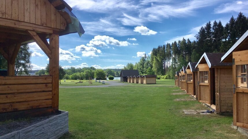 Pávov is a small site close to the town of Jihlava and just a few hundred metres from the E50 motorway running from Prague to Brno. The site belongs to a hotel and is on a little lake where boating, windsurfing and swimming are possible. Only really suitable as a transit site, Pávov has 120 pitches on grass (all for touring units), off one circular tarmac and gravel access road. Low hedges separate the pitches on the central field and around many pitches have electricity. Day visitors as well as campsite and hotel guests use the lake. Being so close to the motorway, Pávov makes a useful stopover for a night, and if you don’t mind the very basic facilities. No English is spoken.