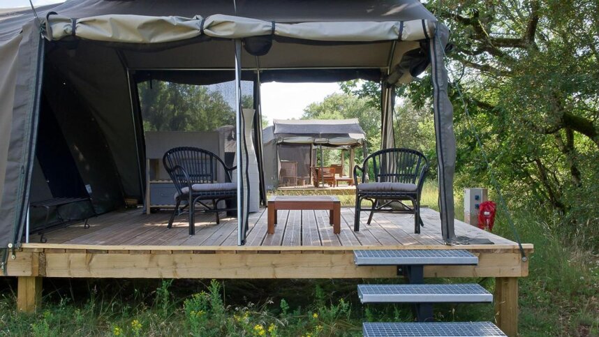 Offering an outdoor pool, Aux Lodges du Mas de Nadal is set on 30 hectares in Sauliac-sur-Célé in the Midi-Pyrénées Region. The property is located 2km from the river le Cele, 31 km from Rocamadour and 24 km from Cahors. Free WiFi is available throughout the site. Guests can stay in 24 private safari lodges and relax under a covered terrace. All units include a seating area. Or, if you would like to stay with your tent, you have 12 secluded camping pitches to choose from. These pitches are not accessible by caravan or campervan, tents only. The campsite offers a restaurant and bar where you can sample and enjoy meals from local producers.