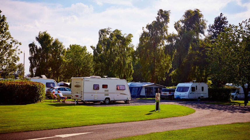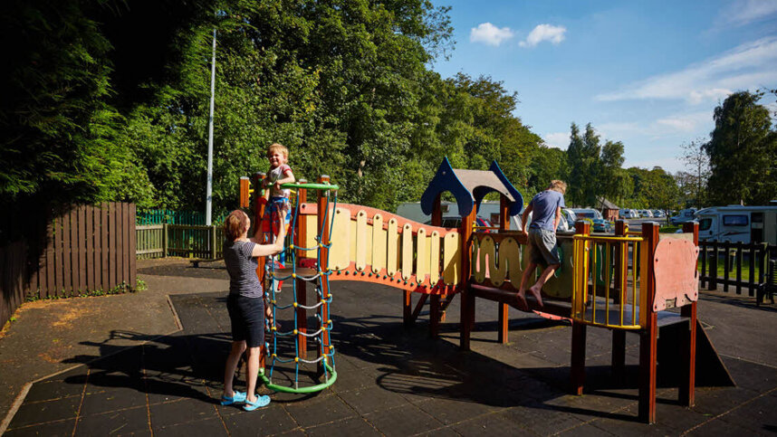 A single toilet block provides accessible facilities. Laundry. Showers. Washbasins. Dishwashing. Defibrillator. Motorhome service point. Chemical toilet point. Children’s play area. Wi-Fi fair charged. BBQs allowed gas, electric & charcoal. TV reception fair. Security barrier. Information room. Pets allowed. Dog walk adjacent. Twin axle caravans accepted. Bus stop 800 metres. Tesco 2 miles. No tents allowed. The earliest time of arrival is 1.00pm. Maximum outfit length of 9.2 metres.