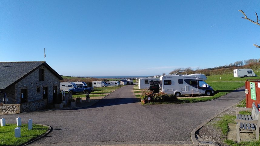 Modern, heated toilet block with four en-suite family rooms and an accessible unit (Radar key). Two traditional blocks have two family bathrooms (£1). Laundry room. Wetsuit wash. Very well stocked shop (open all day). Bar and restaurant (Easter-Oct). Good fenced play area. Campers’ shelter. Communal barbecue. WiFi throughout (charged). Access to the coastal path.