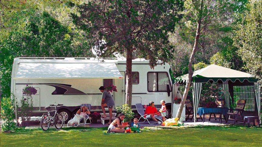 This large, beautifully maintained seaside site is about 70 kilometres northwest of Naples within a pine forest, cleverly left in its natural state. Although it does not feel like it, there are 900 touring pitches in clearings, either of grass and sand or on hardstanding, all with electricity, 80 now also with water and waste water. Finding a pitch may take time as there are so many good ones to choose from, but staff will help in season. Most pitches are well shaded, however there are some in the sun for cooler periods. The central complex is superb with well designed buildings providing for all needs (the site is some distance from the town).
