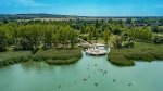 A unique circular pier, that doubles as a sunbathing area, permits access to the shallow waters. One has to walk almost 200 m. into the lake for a suitable swimming depth. Canoes, dinghies and windsurfing are all very popular. This is a quiet site with no entertainment programme, but possibly two or three social evenings during the season. Within an acceptable driving distance one can visit Festetics mansion at Keszthely and the internationally famous hot water lake at Heviz. Kanyavar island at Kis-Balaton provides an excellent location for birdwatching. Only limited English is spoken.