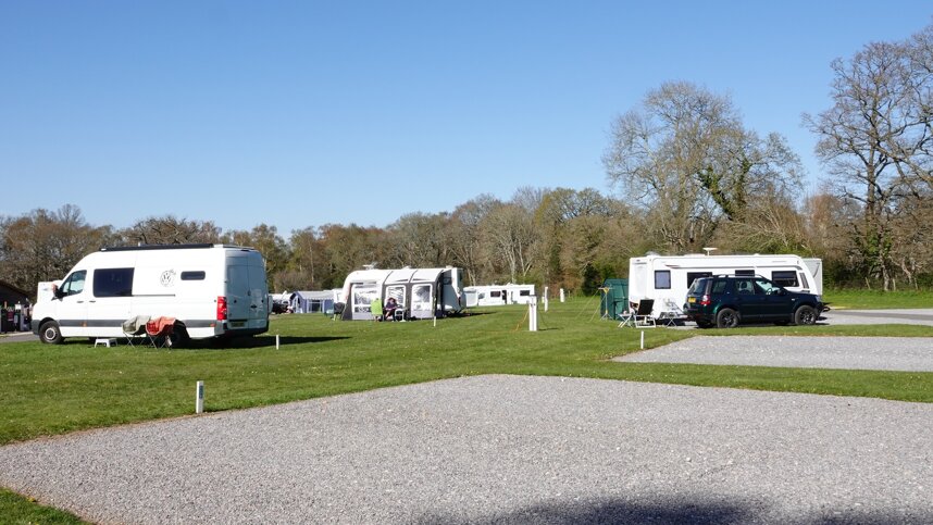 The single toilet block provides toilets, showers and wash basins. Accessible sanitary facilities. Wet suit shower. Laundry. Dish washing area. Motorhome service point. Chemical toilet point. No children’s play area. BBQs allowed, charcoal, gas and electric. TV reception good. Wi-Fi poor, charged. Defibrillator. Information room. Pets allowed. Dog pit stop. Dog & bike wash. Dog walk adjacent. Twin axle caravans accepted. Electric vehicle charging points. No late-night arrivals area. Train station 2 miles. Waitrose 7 miles. Maximum outfit length 9 metres.