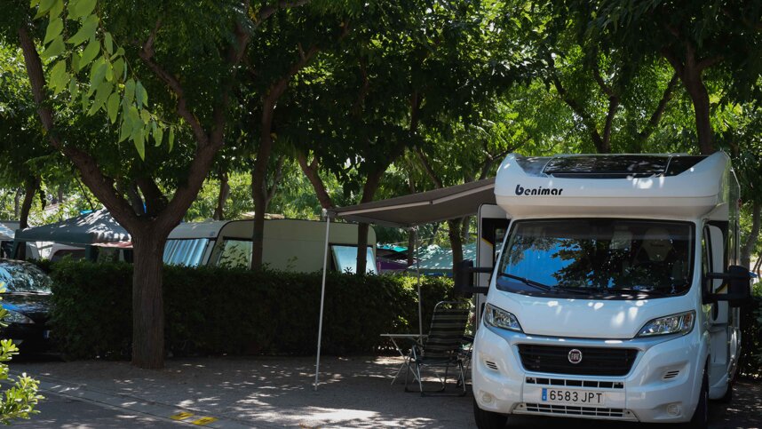 Bonterra has a clean and neat appearance with tarmac roads, gravel-covered pitches, palms, grass and trees that give good shade. Overhead sunshades are provided for the more open pitches in summer. There is a little road and rail noise. The site has an attractive pool complex, including a covered pool for the winter months.