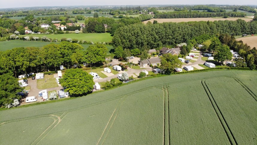 Close to the A14 and surrounded by farmland, this small touring site, four miles east of Bury Saint Edmunds, provides a convenient base to explore the nearby town and surrounding villages or as a stopover point. The owners have created 50 spacious pitches within the main touring area, divided into two sections – one of which is reserved for adults only. All pitches have 10A electricity. A separate field with a further ten pitches situated under trees is available for contractors working locally, as well as any visitors who prefer shaded areas. The main touring field has some shade from well maintained hedges and the trees bordering the site.