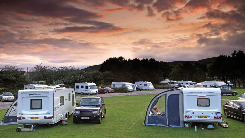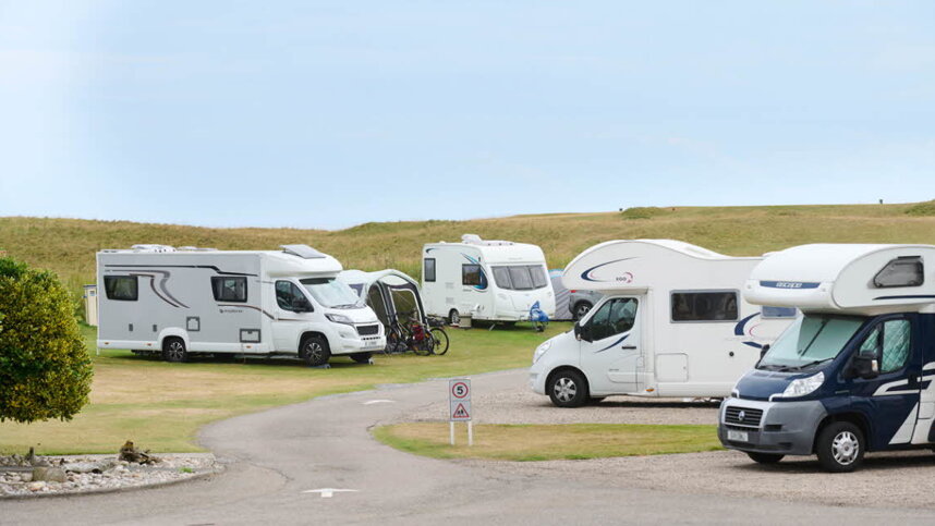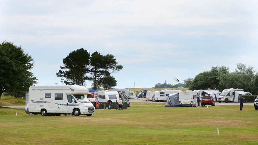 A single heated toilet block provides accessible facilities. Dishwashing area. Motorhome Service Point. Laundry. Defibrillator. Wi-Fi hot spot. TV reception fair. BBQs allowed: charcoal, gas, electric. Dog walk. No children’s play area. Small shop. Twin axle caravans accepted. Pets allowed. Calor Gas sales. Tents allowed. No late-night arrivals area. Information room. Co-Op 2 miles. Bus Stop 1500 metres. Maximum outfit length 8.5 metres. No arrivals before 1:00pm.