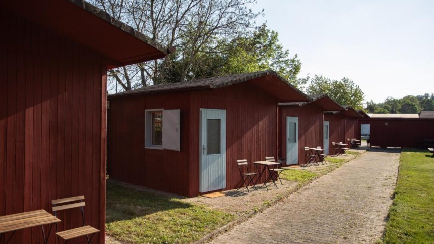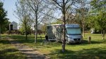 Dzbán is situated on the edge of the Divoka Sarka Nature Reserve, but also close to the centre of Prague. A lake with a beach is just 200 m. away and very welcome after a hot day in the city centre. There are 120 numbered touring pitches here, all with electricity, on level, grassy fields plus some concrete hardstandings. Off paved access roads, the pitches are separated by young trees and in summer there is not much shade. This is a large, rather anonymous site but facilities are adequate.
