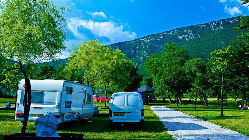 Camp Lijak is a small campsite with well-maintained facilities and enthusiastic and friendly owners. They are continuously working on projects to improve the site and aim to provide the ultimate holiday experience for campers. There are 60 level pitches spread over one hectare, all with electricity (6A), water, sewerage and WiFi access. There are also two bungalows and partially underground hobbit style huts. Camp Lijak is a good base for active outdoor pursuits such as hiking, cycling and paragliding which are actively promoted by the owners. The site has its own landing strip for paragliding and offers a minibus service to suitable launch sites.