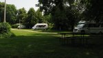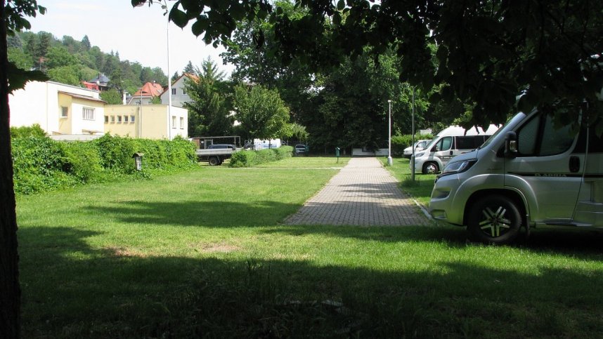 This site is very close to the Vltava river, although you cannot see it, and there has been heavy flooding in the past. There are 75 touring pitches (10A electricity), they are small (80-90 sq.m) and about half are on hardstanding. The grass pitches can become muddy with rain. The access road is narrow and manoeuvring space is limited, so the site may be less suitable for large caravans and motorhomes. Nevertheless, it is only a 15/20 minute journey to the centre of the city by bus.