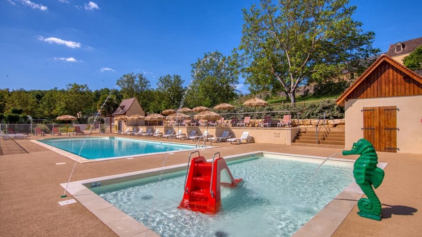 The campsite is located in a beautiful area of France, close to the Dordogne River and the Vézère Valley. There are many things to see and do in the area, including visiting the Lascaux caves, exploring the medieval town of Sarlat-la-Canéda, and canoeing down the Dordogne River.