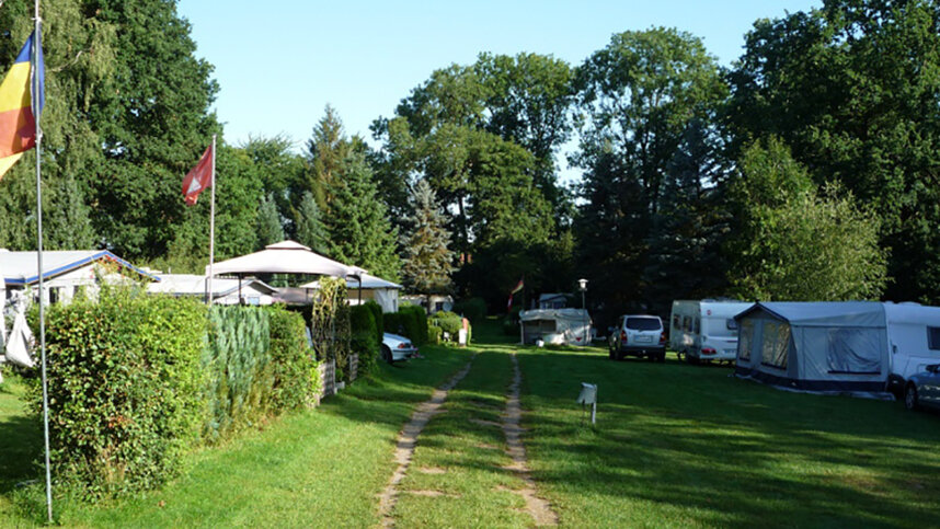 Only thirty minutes from the centre of Hamburg in the heart of Stormarner Schweiz, ABC am Großensee is a peaceful, family-run campsite established in the late 1940s. It has just 70 pitches, half of which are for touring units, all with electricity connections (16A Europlug). The remainder are occupied by seasonal units and by chalets to rent. There is direct access to the lakeside with supervised swimming. The village has a bakery and several restaurants, whilst nearby Trittau has shops, a water mill and Napoleon’s Bridge. Walkers and cyclists can explore the Three Lakes Plateau or the Hahnheide, Schleswig-Holstein’s largest nature reserve.