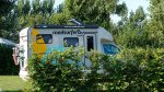 The heated toilet block has showers, washbasins and wc’s. Baby room. Chemical toilet point. Accessible Facilities. Dish washing area. Motorhome service point. Laundry with washing machine and dryer. Heated outdoor swimming pool. Heated indoor pool. Children’s pool. Snack bar. Pizzeria. Takeaway. Freezer for ice packs. Bread to order. Bar. Boules. Children’s play area. Games room. Table tennis. Bike hire. Dogs and BBQ’s allowed. Tourist information. Wi-Fi zone free. TV room. Earliest arrival time 14.00. Pebble beach nearby. Twin axle caravans allowed. Golf course nearby.