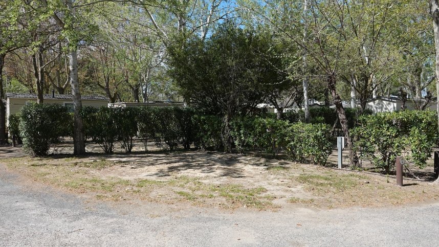 With 277 level and hedged pitches, there are 47 touring units (mainly 100 sq.m), 102 mobile homes or chalets to rent and the remainder privately owned. Electricity (6A) and water are available on most, and the pitches are well maintained and shaded, with trees and flowering shrubs; pitches do have tree shade, which is certainly needed in this region mid-summer. And all are within easy reach of modern sanitary facilities,