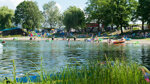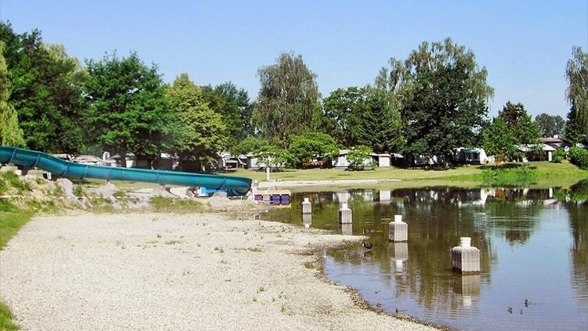 The site has a well-tended look and good English is spoken. The lake is divided into separate areas for bathing or boating and windsurfing, with a long waterslide. The public are admitted to this on payment and it attracts many people on fine weekends.