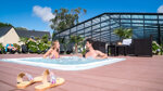 Two toilet blocks include a baby room and accessible facilities. Laundry with washing machine and dyer. An iron, a hoover and a hairdryer are available at the reception. Shop selling essential items, as well as bread and pastries. Bar and takeaway. Entertainment room and children’s room, open July/Aug only. Games room (coin operated) and TV corner is also open throughout the season. Swimming pools (heated July/Aug). In the pool complex, there is a hot tub, massage jets, waterslides, counter-current river and aquabikes. Fitness room. Tennis. Minigolf. Boules. Multisports court. Play area. Trampoline. Bicycle hire. Paddle and kayak hire. WiFi all over site (paid plans, as well as a free hotspot in bar and entertainment area).