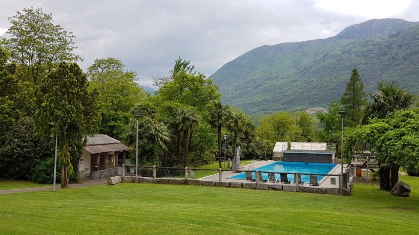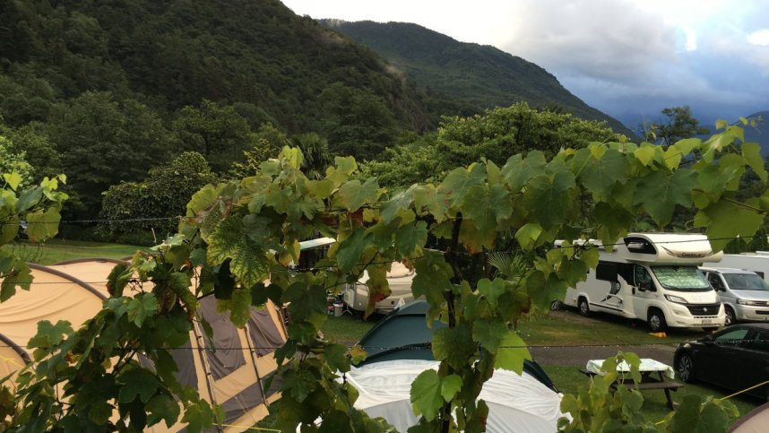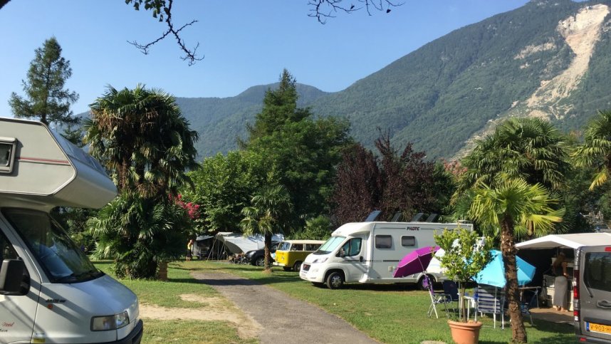 Now that most traffic uses the N2 motorway, the B2 Gotthard - Bellinzona one is used mainly by local vehicles and is, therefore, much quieter. Al Censo is a very pretty campsite with an abundance of flowers and shrubs and backed by a mountain face. Although the site is on a slope and levellers may be needed in places, the 138 pitches, all of which have electricity (6A), are level and amongst mature trees with an overflow section for tents just outside the entrance. Reception and a shop are in the entrance building, which has a small covered terrace where drinks are served. No arrivals between 12.00 and 14.00.