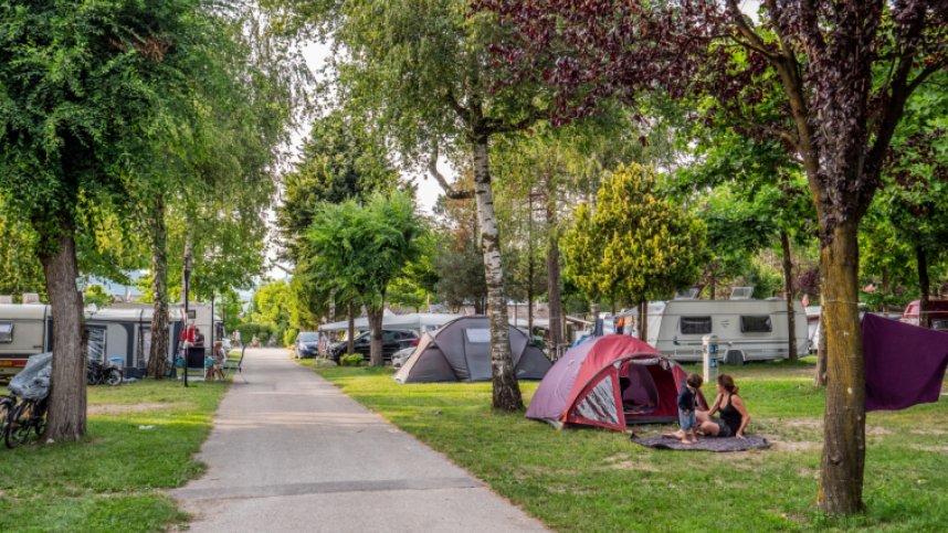 The restaurants nearby buzz with activity, the watersports are enjoyed by all but it is peaceful on the site. An excellent restaurant just outside the campsite gate is owned by the campsite family and is also used by the public. The site is just 10 m. from the lake where swimming and non powered watersports can be enjoyed. Some noise may be experienced at weekends and in high season as the area is popular with locals and motorcycle enthusiasts.