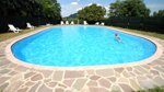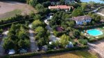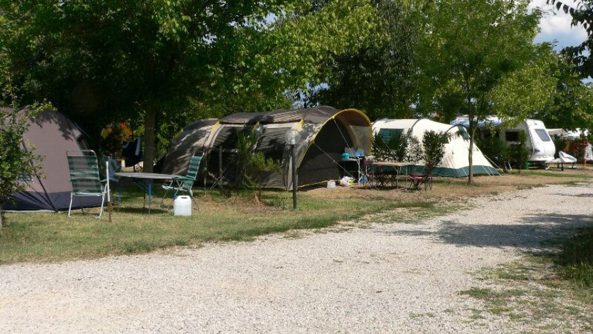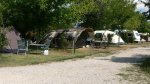 There are just 25 flat touring pitches with 16A electricity at this basic site which is part of a seven hectare farm. Water is only available from the small but satisfactory sanitary block. The site is hedged and adjacent to various fruit trees and vines from which red wine is made. There is no shop on site but the family sells wine and jam and some basics such as pasta. A shop in the village (5 km) provides bread and other essentials. Restaurant meals are available at weekends only and on Friday if notified in advance. On-site facilities are limited to a small pool for children, a very basic play area and a small animal area. There is some noise from two roads.