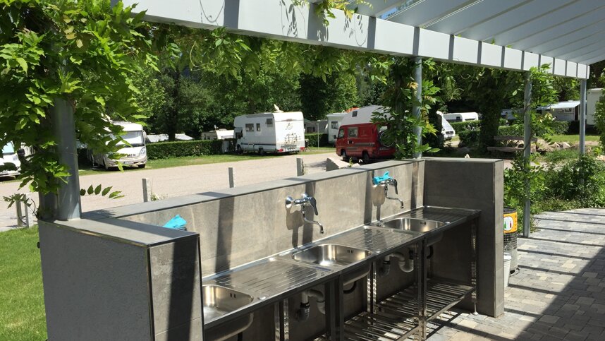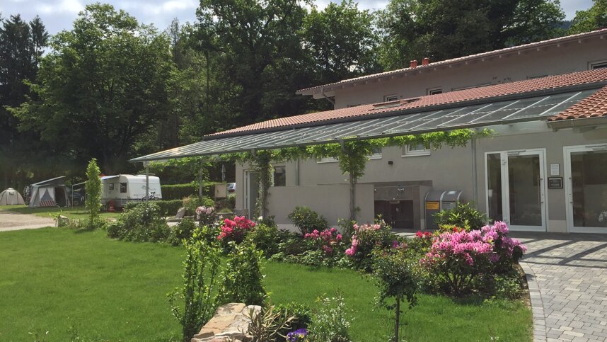 This is a small, quiet, family run site in the suburbs of Freiburg. Its grass pitches, set on small terraces, are shaded by many mature trees. Most of the 70 pitches are for touring units and have electricity (10/16A Europlug). On the upper part of the site is a long established and very attractive restaurant. Open in the evenings, the restaurant specialises in dishes freshly prepared from organic ingredients; vegetarian and local specialities are also part of the menu. Additionally a small bar and bistro is part of a wellness centre which adjoins the site.