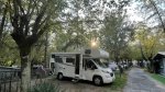 The 270 level pitches with electricity (3A solar-generated on-site) vary from 50-90 sq.m. Those on terraced pitches enjoy shade from mature trees; others have no shade. Cars must be parked in the large adjacent car park. Trolleys are provided.