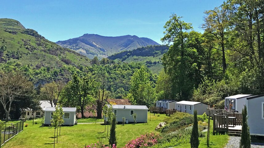 surrounding the farmhouse is the campsite. You have a view of the mountains from the 32 flat, delimited pitches. The various rental accommodations, situated on terraces, also have a view of the Pyrenees.