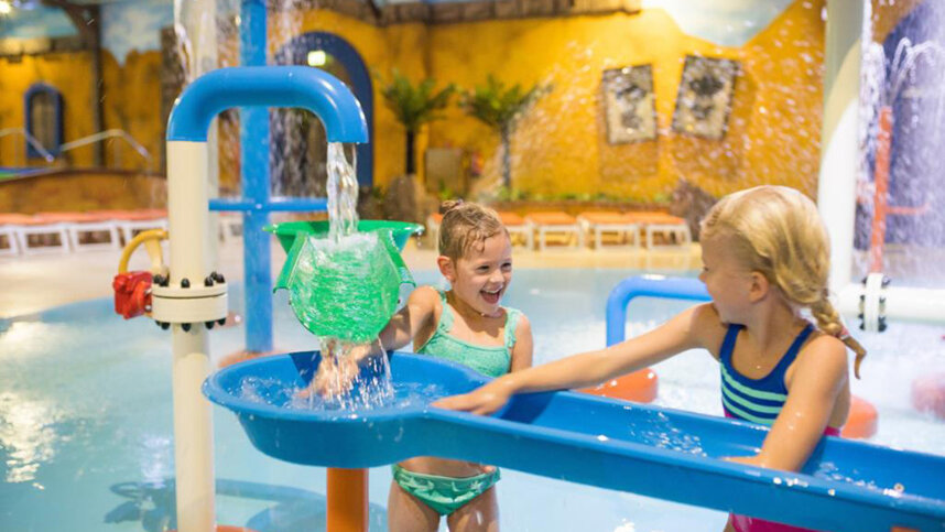 One modern toilet building with toilets, washbasins (open and in cabins) and spacious showers. Family showers and baby room. Accessible Facilities. Launderette. Motorhome services. Bar and snack bar (many snack and restaurant amenities at the theme park). Adventure playground. Limited entertainment. Free entrance to theme park. Max. 1 dog per pitch.