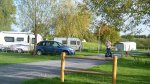 It has 100 pitches, of which 80 are available for touring units, with 10 occupied by chalets to rent and eight by seasonal units. Pitches are generally large and level, separated by young bushes, and all have 10A electrical connections available. Those along the riverbank have delightful views of the Aisne River, though access is via a coded gate in the secure fence. The town is quite attractive and is worthy of an evening stroll.