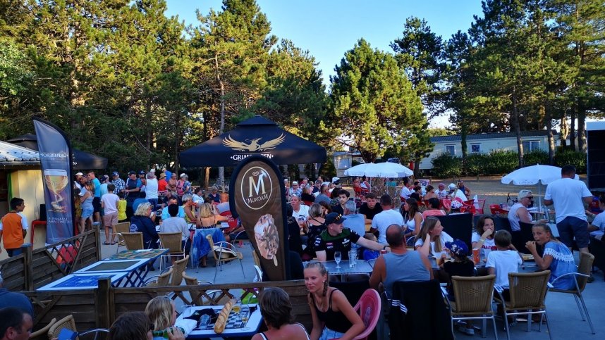 Camping Aux Grands Espaces is a site in Saint-Germain-sur-Ay, Manche, located nearby a sandy beach. There is a playground and a sports ground. For keen cyclists, the site offers various cycle tours. There are entertainment programs and a gym. For those who want to relax after a busy day there is a sauna and steam room available. The site has an aquatic paradise, an outdoor swimming pool, a heated indoor pool and a children's pool. There is also a water slide. In the immediate vicinity you can swim in the sea. At Aux Grands Espaces you can go windsurfing and water-skiing. The site has a snack bar. You can also buy fresh bread. Visitors can surf the internet with their laptop computer on 80% of the site. The site has almost 500 pitches of which 140 are for touring units, the rest are occupied on a seasonal basis. There are also 28 tents and mobile homes available to hire.