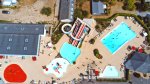 Toilet block with showers wash basins and wc’s. Accessible facilities. Chemical toilet point. Beach showers. Baby room. Dish washing area. Laundry with washing machine and dryer. Games room. Water slides. Heated indoor and outdoor swimming pools. Tropical leisure pool. Children's paddling pools with water games. Tennis court. Wi-Fi charged. Mini golf. Boules. Table tennis. Multi-sport area. 5 children's playgrounds. Bouncy castle. Trampolines. Bar. Snack bar. Shop. Bread to order. TV room. Pizza truck Sunday night. Defibrillator. Dogs and BBQ’s allowed. Freezer for ice packs. Sauna and steam bath.