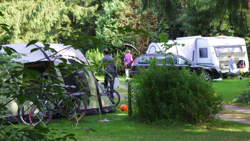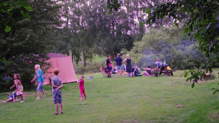 Motorhomes allowed, 2 hardstanding pitches available. Seasonal Guided walks. Small river beach. Natural swimming lake. WiFi is unreliable, connection with cable possible. Private washing cubicles and WC's (toilet paper not provided) Bar with pool table.Table tennis. Geocaching and archery. Breakfast and fresh bread available. Children's playground. Fishing on site. Laundry with washer and dryer. Chemical toilet disposal point (only bio toiletfluid). Max 3 Dogs permitted.