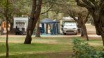 The campsite offers 600 pitches, all with 6A electricity, under pine and eucalyptus trees. Cars are parked in a separate area, and vehicle access is strictly controlled, giving the site a quiet, peaceful ambience. Although 800 metres from the gently shelving beach, in partnership with other campsites, it provides regular shuttle buses to the beach car park. The 'campsite collective' also runs a bar and restaurant on the beach with toilets and showers. The short walk to the beach from the car park is along a timber walk, and site staff clear rubbish from the beach and the pine wood daily.