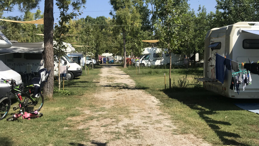 Five clean, modern toilet blocks include accessible facilities on the site and at the beach. Motorhome services. Washing machines. Shop. Bar and restaurant. Swimming pool. Tennis. 5-a-side football. Volleyball. Bocce. Fitness trail. Bicycle, car and fridge hire by arrangement. Children’s clubs (4-12 yrs, 13-17 yrs). Entertainment. WiFi in the bar and pool area (free). Shuttle bus to the beach.