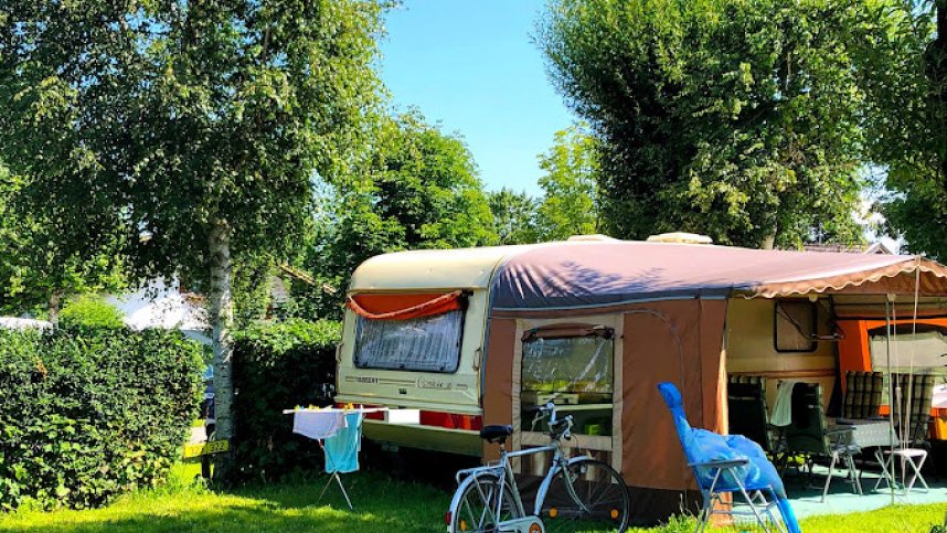 This well run site is within easy reach of the pleasant town of Füssen and the famous castles of Neuschwanstein and Hohenschwangau, and the extravagantly baroque Wieskirch (Church in the meadow) is 32 km. away. Situated on the edge of the lake, it has a beach, and a jetty at which pedaloes and rowing boats can be hired. The site is level, with 500 touring pitches. Those for caravans and motorhomes are on grass or hardstanding, of good size, marked and numbered. All are close to electrical points (10/16A), and 140 of them have electricity, water supply and drain.