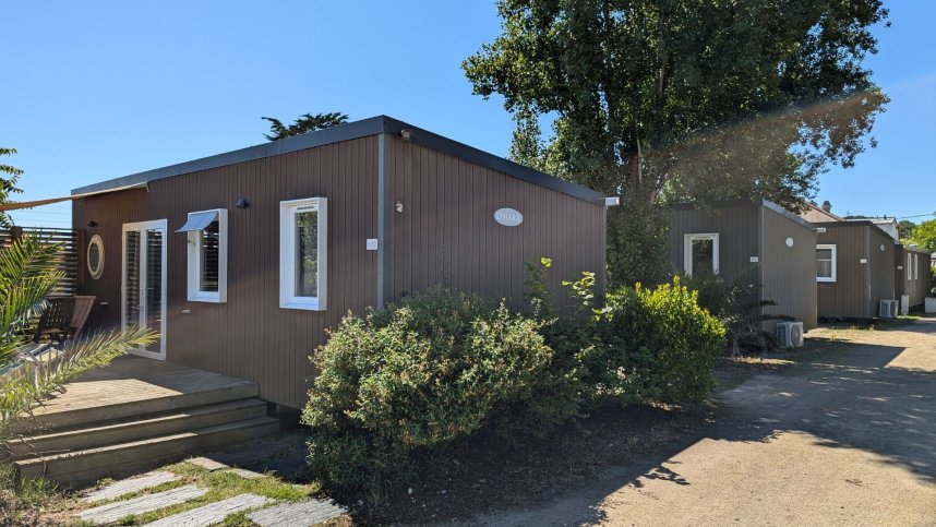 Camping Bel Air is located in a quiet suburb of Pornichet, just 50 metres from a sandy beach. There are 80 touring pitches with a further 180 pitches for owner-occupier mobile homes and others to rent. The site extends over several hectares and the many trees and shrubs ensure some tranquil areas in what is a busy campsite in high season. The pitches are generally of a good size, sandy and well shaded. They are located on a lower section of the site, which, although bordered by a road, is quite peaceful. Access to this part of the site is quite steep. On the higher part, there is space for nine motorhomes.