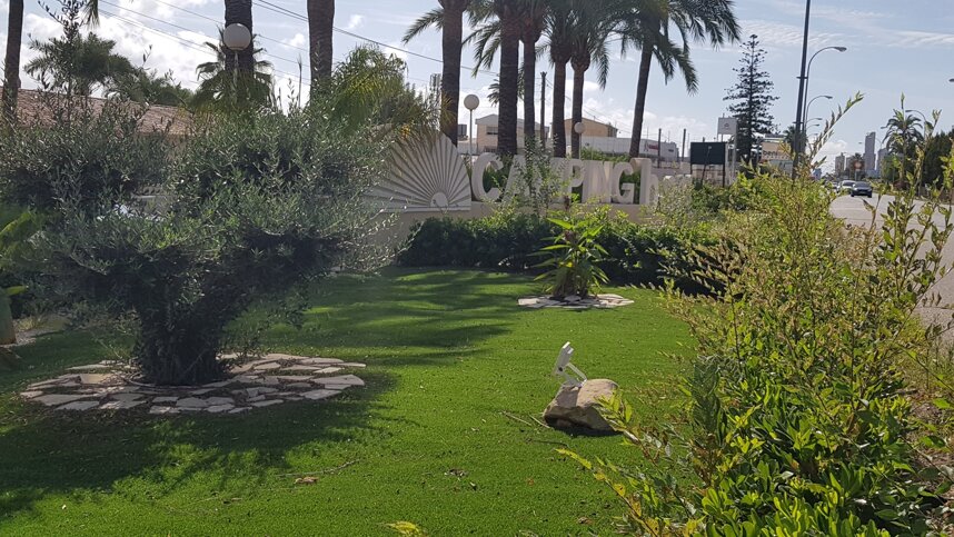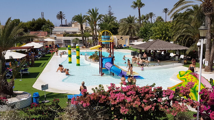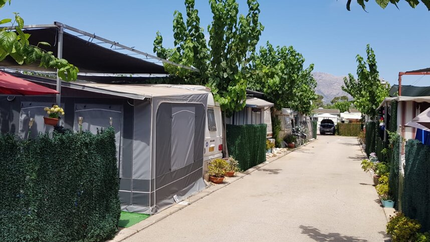 Camping Benisol is a well developed and peaceful site with lush, green vegetation and a mountain backdrop. Mature hedges and trees afford privacy to each pitch and some artificial shade is provided where necessary. There are 270 pitches of which around 90 are for touring units (60-80 sq.m). All have electricity hook-ups (10A) and 75 have drainage. All the connecting roads are now surfaced with tarmac. Some daytime road noise should be expected. The site has an excellent restaurant serving traditional Spanish food at great prices, with a pretty, shaded terrace overlooking the pool with its palms and thatched pool bar.