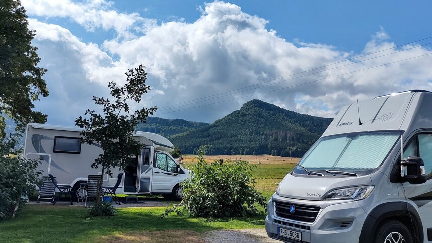 Camping Bozanov is located in a very wooded area among the mountains of the Broumovské Steny, excellent for hiking and cycling. The marked trails lead through the beautiful hilly landscape with fields and extensive forests. Nearby is the Adrspach National Park with its bizarre and rugged sandstone rock formations and azure lake surrounded by steep cliffs.