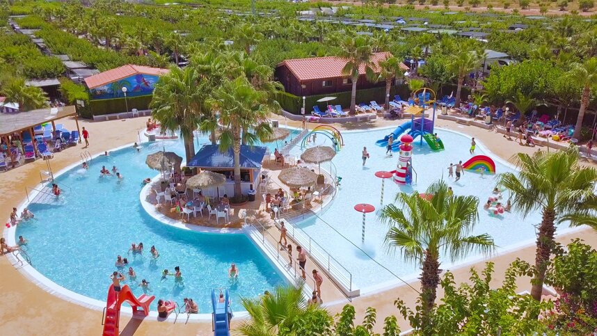 A new swimming pool complex includes flumes and a bar in the centre which is accessed via a dry walkway. The pools and the play park are locked for certain periods during the day. The site has its own bullring where amateur bullfights are held each Saturday in summer. A huge activities and entertainment programme is organised in high season. The various amenities are scattered around the site, therefore a bicycle is very useful. The site was previously known as Camping Torre la Sal 2.