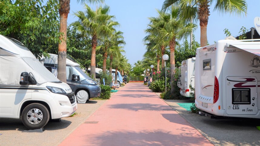 The flat pitches vary in size; some have their own sinks, and most have decent shade. All have 10A electricity, and a few have a partial view of the sea. This high-quality site offers a wide range of excellent facilities and is perennially popular with active families over the summer months. On the western side are a children’s play park, a large disco and sporting facilities including a sports centre, tennis, squash, two football pitches, pétanque and an outdoor gym.