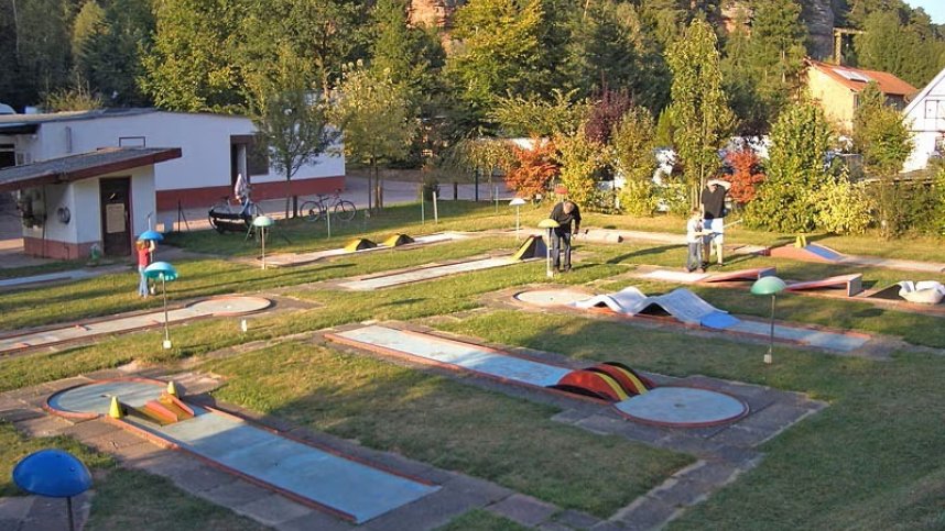 From Saarbrücken go towards Kaiserslauten on A6/E50 or road 423. Take Zweibrücken exit, then Pirmasens, finally turning to Dahn at Hinterweidenthal. Site is well signed in Dahn.