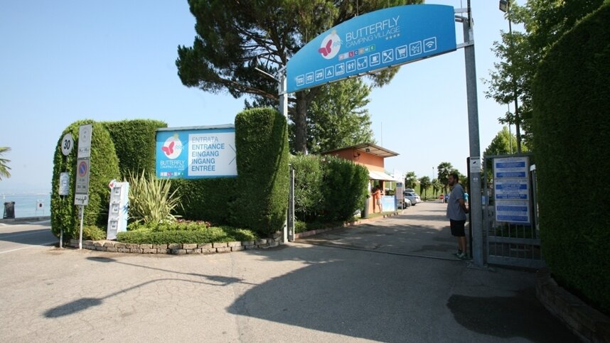 Camping Butterfly is in the town of Peschiera and has been owned by the same family for 40 years. Giorgio, the younger generation owner, is keen to make your holiday a success. Camping Butterfly is associated with IT62630 Bella Italia. There are 292 flat pitches on grass and sand of which 50 are for touring with 6A electricity and with some shade from mature trees. Many mobile homes are mixed randomly around the camping area. A pleasant swimming pool with a paddling pool (and lifeguard) is available for cooling off and fun (hats compulsory). The site is keen to welcome children under 12 years of age accompanied by their parents.